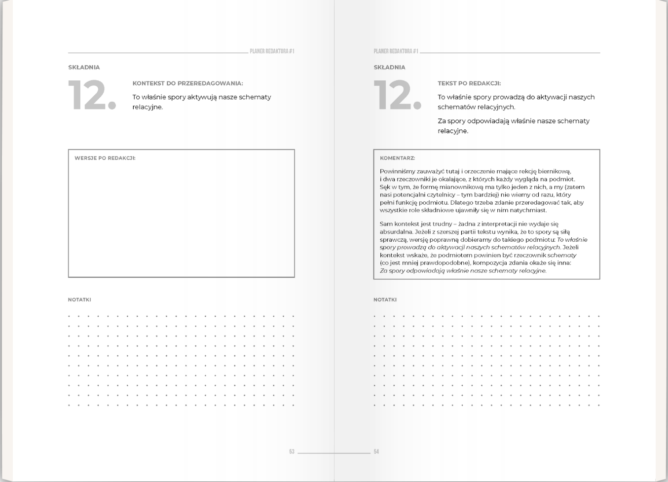 Jakość naszych publikacji nie jest dziełem przypadku – to wynik niemal obsesyjnej dbałości o detale. A ponieważ często pojawiają się pytania o kulisy powstawania Planerów redaktora, postanowiliśmy udostępnić egzemplarze, na których pracujemy podczas szkoleń. Nazwaliśmy je egzemplarzami przedostatecznymi – bo to na nich toczy się bezkompromisowa, wielostopniowa walka o detale (i to przez nie zwykle opóźnia się wysyłka egzemplarzy oferowanych w przedsprzedaży).